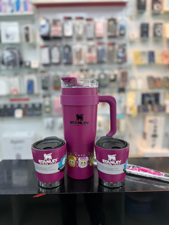 Mor renkte, kulplu büyük termos bardak ve iki küçük yalıtımlı bardaktan oluşan Stanley seti. İçeceklerinizi sıcak veya soğuk tutar. İthal üründür.Sıfırdır ve set hâlindedir.☕