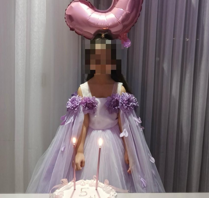 Mor Straplez Çiçekli Çocuk Abiye Elbise