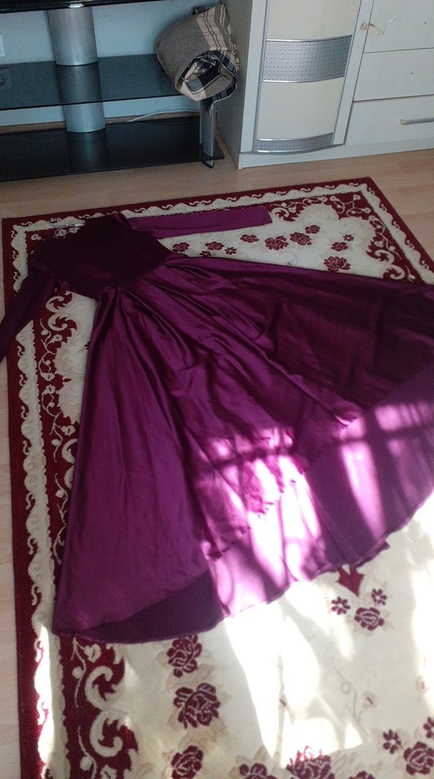 Fitted, straplez uzun abiye elbise, koyu mor renkte drapeli tasarıma sahiptir. Gotik tarzda, şık bir düğün görünümü için uygundur. ve hiç giyilmedi markası arminedir cok kalitelidir