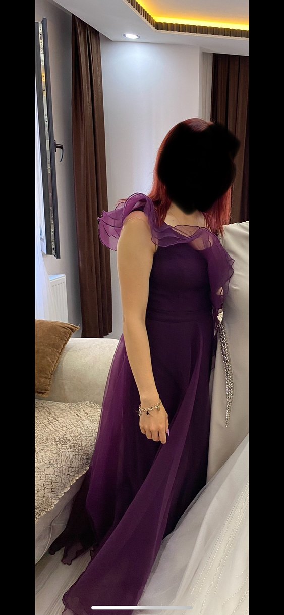Mor, straplez yaka ve drapeli detaylı, vücuda oturan midi uzunlukta abiye elbise. Düğün ve mezuniyet için uygun. 38 beden sadece 1 kez giyildi . Üründe herhangi bir deforme yoktur .