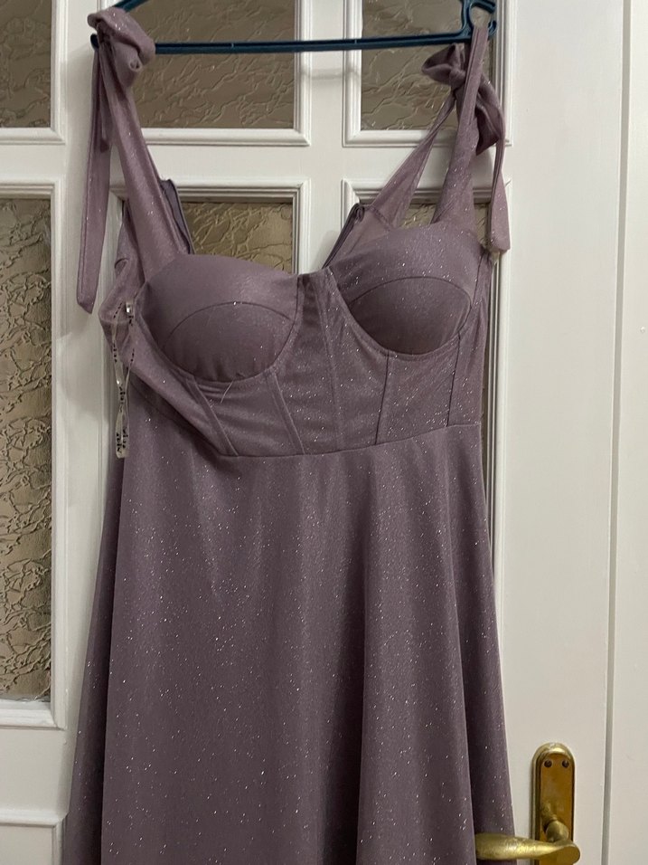 Mor-gri tonlarında, straplez ve askılı uzun, oturan kesim abiye elbise. Drapeli detaylarıyla romantik geceler için şık ve göz alıcı. ✨ Sorunu yoktur , 1-2 kez giyildi. MARKA TEMSİLİDİR.