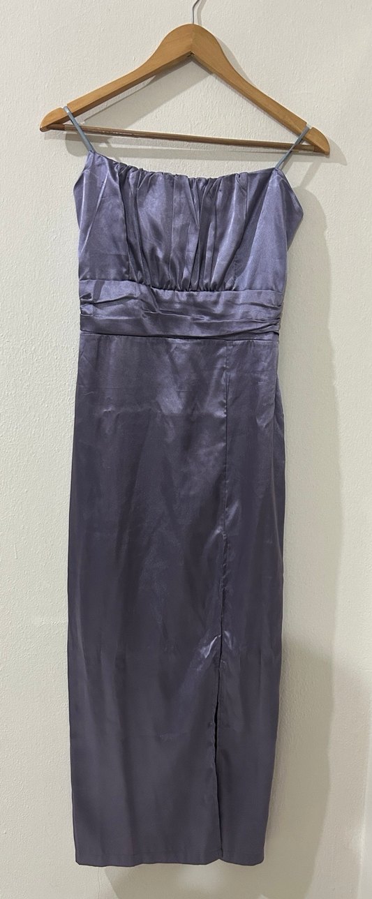 Mor Straplez Uzun yırtmaçlı Drapeli Abiye Elbise