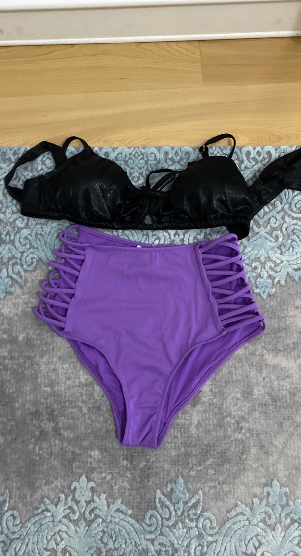 Mor Strappy Bikini Altı ve Siyah Üst