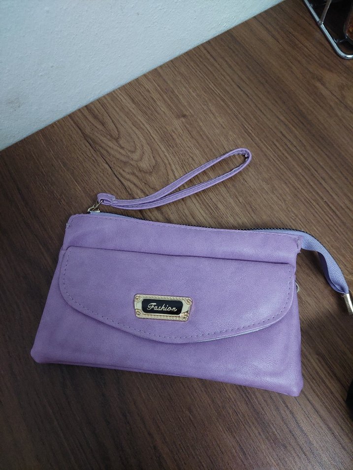 Mor süet malzemeden yapılmış, fermuarlı ve bilek askılı, günlük kullanım için uygun minimal ve trend sokak stili kadın el çantası cüzdan