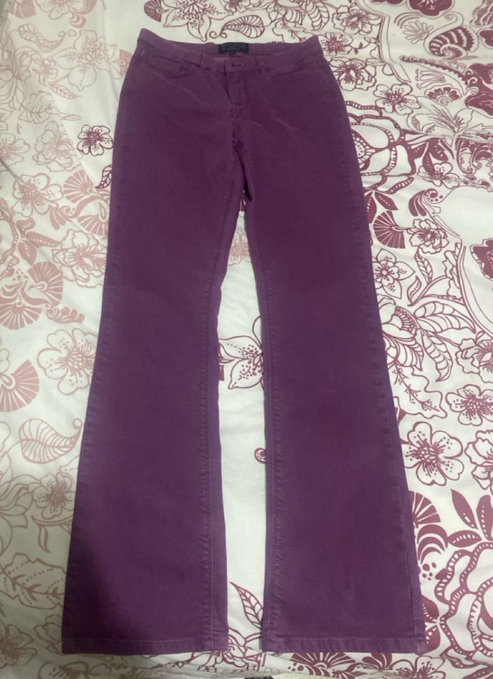 Koyu mor süet kumaştan, düzenli kesim ve midi boyda kadın pantolon. Desensiz, rahat ve günlük kullanıma uygun sokak stiline uygun pantolon.