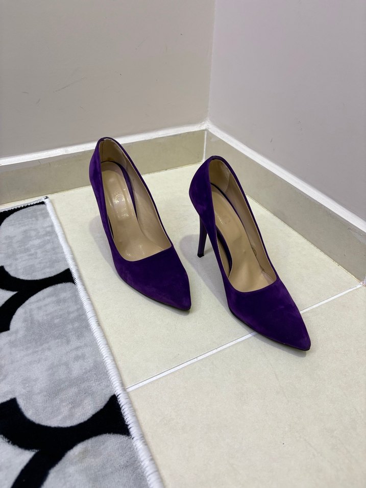 Mor Süet Stiletto Topuklu Kadın Ayakkabı