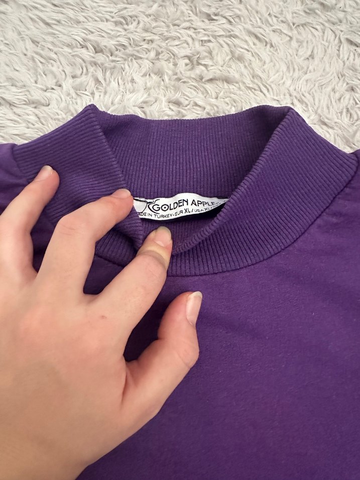 Mor renkli, bisiklet yaka ve uzun kollu kadın sweatshirtü. Orta boyda, yumuşak ve sıcak kumaştan, günlük kullanım için uygun.