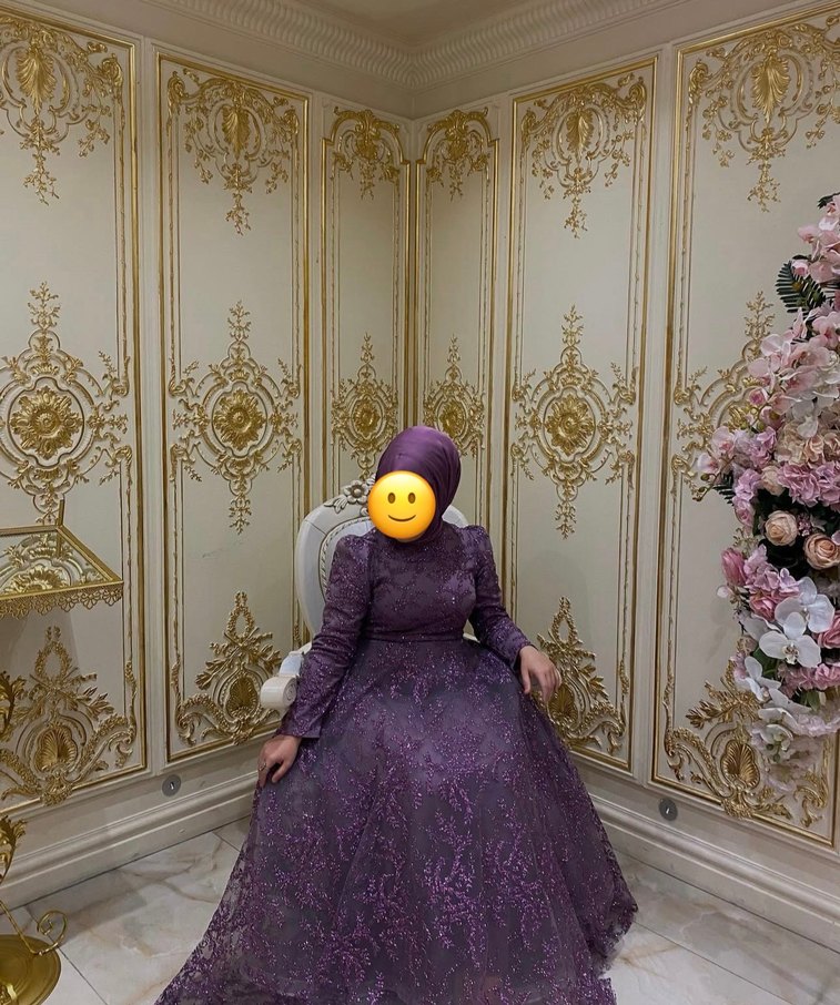 Mor Tarlatanlı Tesettür Abiye Nişanlık