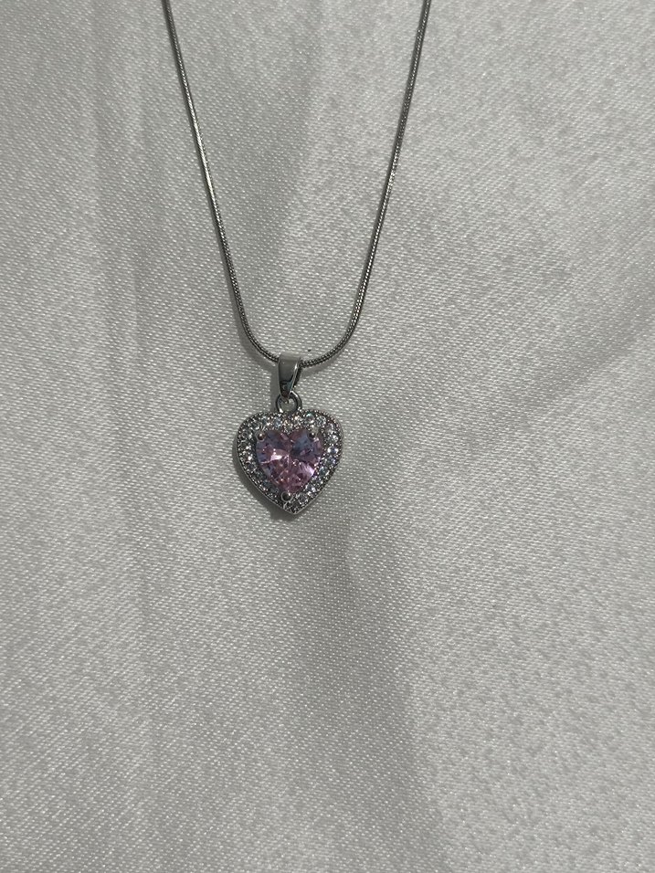 Mor taşlı kalp şeklinde, parlak detaylı midi boy kolye. Romantik geceye uygun, klasik ve hafif gotik tarzı bir araya getirir.