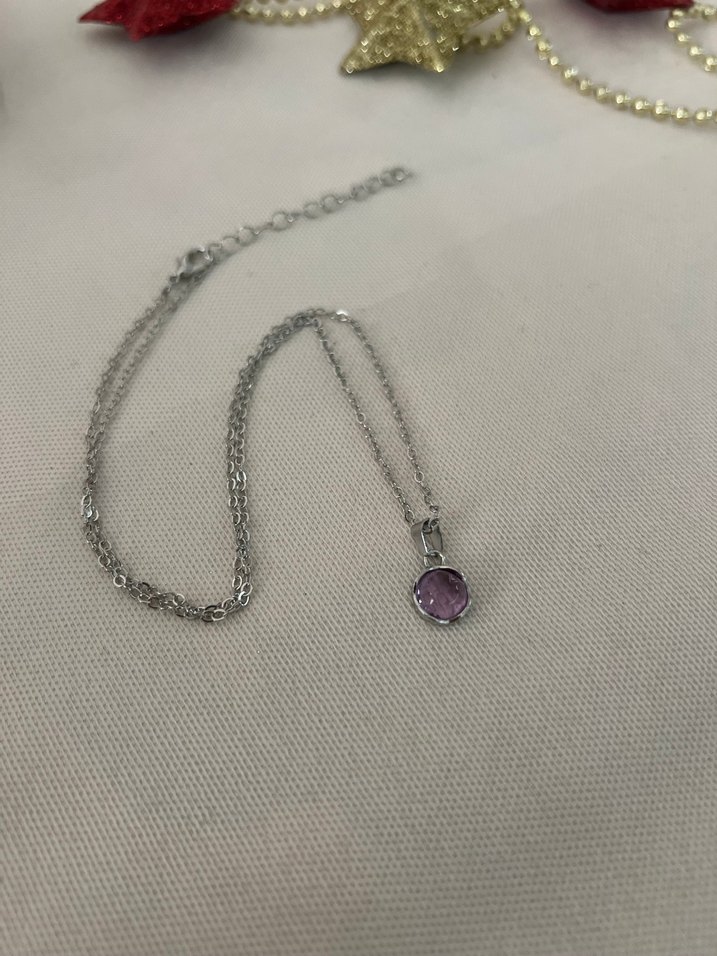Mor Taşlı Zincir Detaylı Kadın Kolye