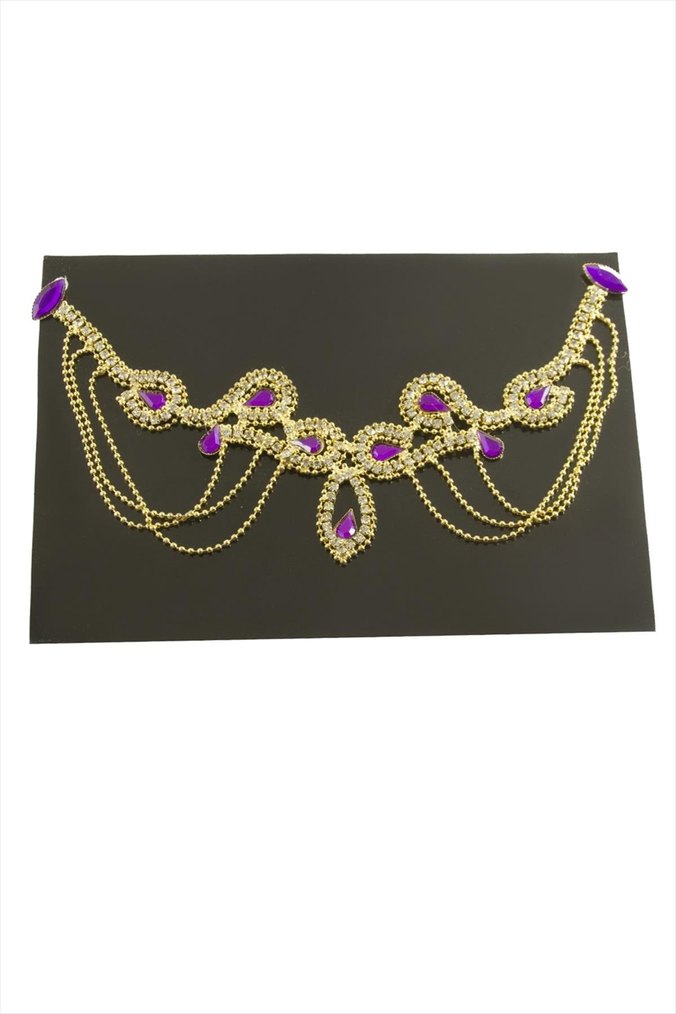 Mor Taşlı Zincir Detaylı Vücut Zinciri