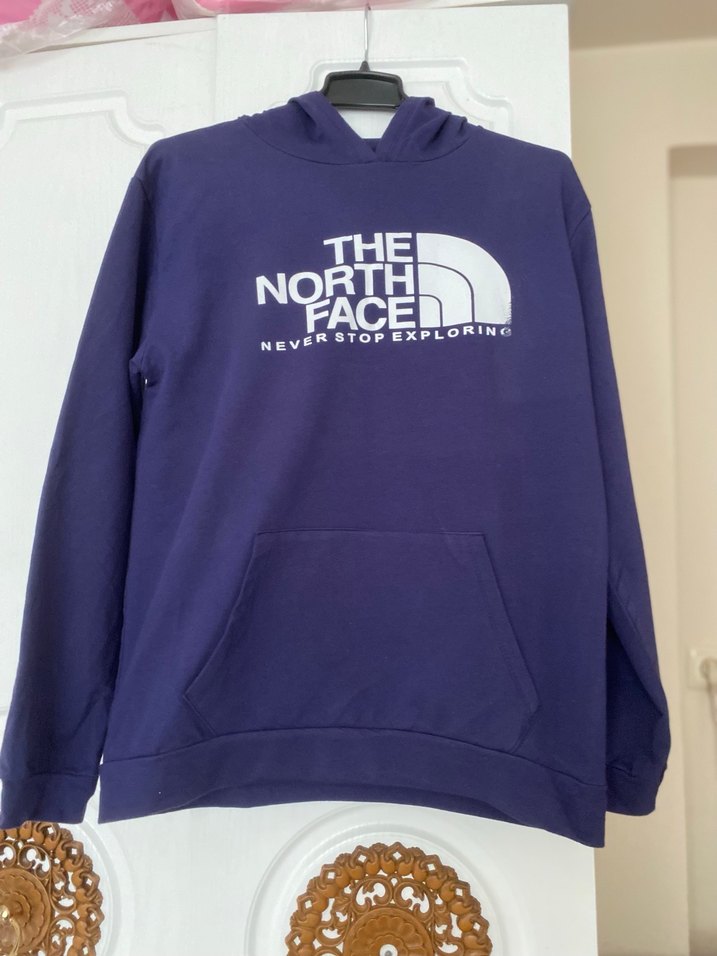Mor renkte, bol kesim, uzun kollu ve bisiklet yaka The North Face baskılı sweatshirt. Normal boyda ve ön cep detaylı, yumuşak ve sıcak kumaştan üretilmiştir.