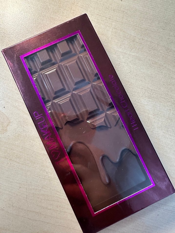 Mor tonlarında koyu renkler içeren, çikolata barı tasarımlı göz farı paleti.
