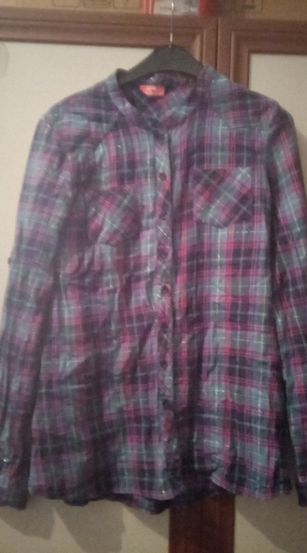 bayan gömleği, düğmeli önü, uzun kolları ve yakalı tasarımıyla dikkat çeker. Mor tonlarında, rahat kesim ve sentetik yumuşak kumaştan üretilmiştir. Günlük kullanıma uygundur. göğüs kısımlarında her iki tarafta cep mevcuttur temiz kullanılmış 13-14 yaş kız çocukları için