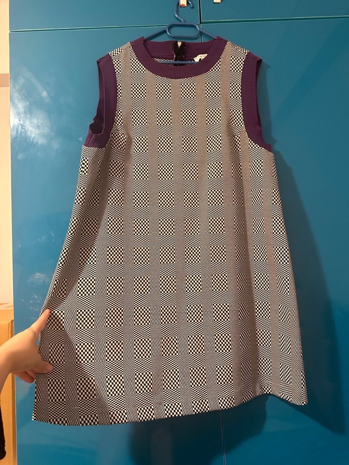 Mor detaylı, triko dokulu, kolsuz elbise. Gri desenli ve rahat kesimiyle hem günlük hem de şık Alıcısına mutluluk getirsin ♥️