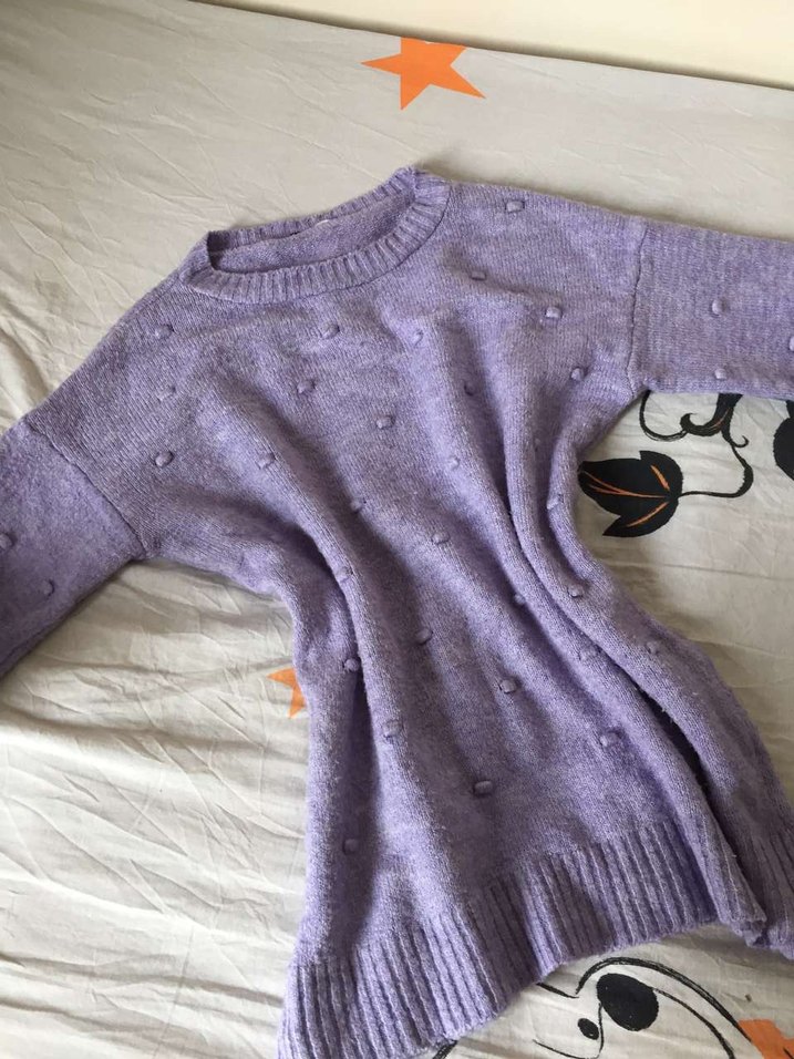 Pastel mor renkte, yuvarlak yakalı ve uzun kollu triko kazak. Rahat kesimi ve örgü dokusu ile gündelik kullanıma uygundur. marka temsili