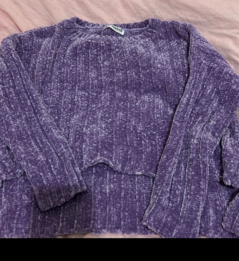Mor renkte, triko kumaştan, uzun kollu ve yuvarlak yakalı, bol kesim kadın kazak. Rahat ve desen içermeyen tasarımı günlük kullanıma uygundur.