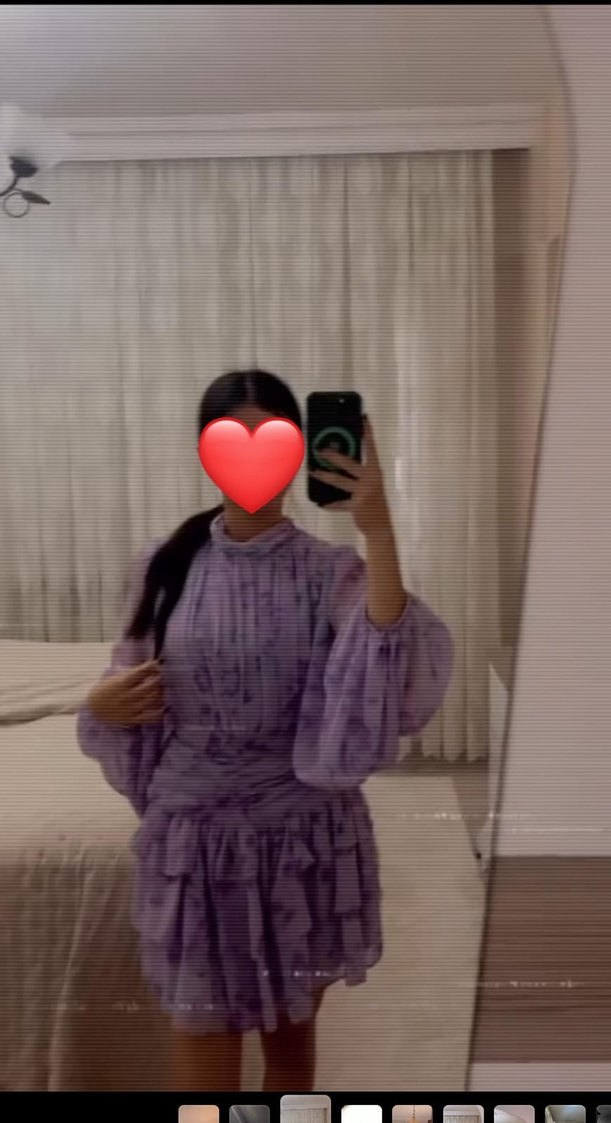 Bu vücuda oturan mini elbise, uzun ve şeffaf kollara, yüksek yakaya sahip olup, pastel mor tie-dye desenli ipeksi kumaştan yapılmıştır. Bohem ve goth tarzlarını bir araya getirir.