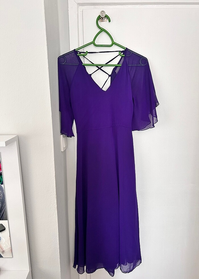 mor tül sırtı açık elbise