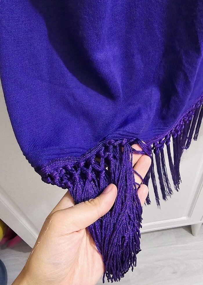 Sorunu yoktur. Tüy makinesiyle tertemiz yaptım . Çok az kullanıldı. Alt kısmında ip püskül detayı vardır. Kolları hafif balon koldur.