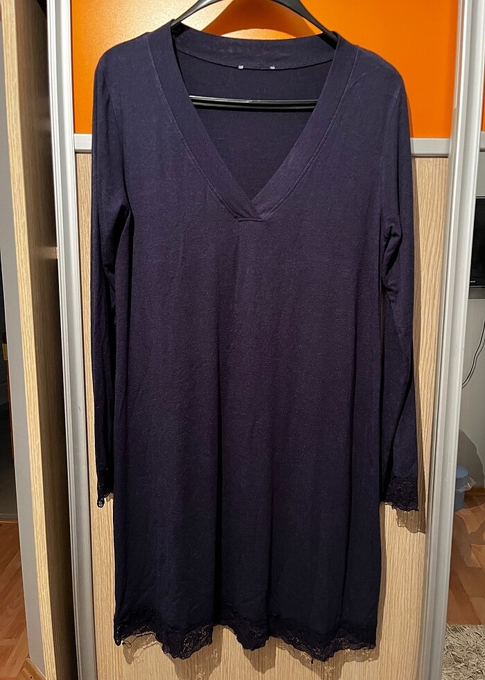 Yakası ve kolları dantel detaylı defosuz ürün.