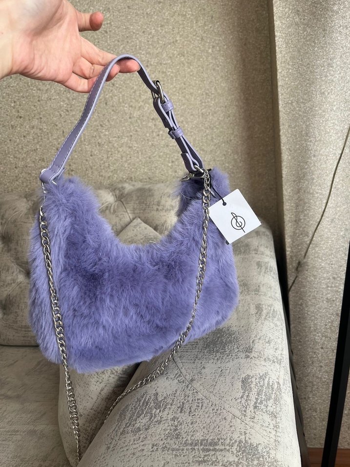 Mor pastel tonlarında, tüylü detaylı yumuşak kumaştan yapılmış kadın omuz çantasıdır. gördüğünüz gibi etiketli bir üründür hediye geldi ve çok çantam olduğu için satıyorum. Çok güzel tatlı bir çanta.