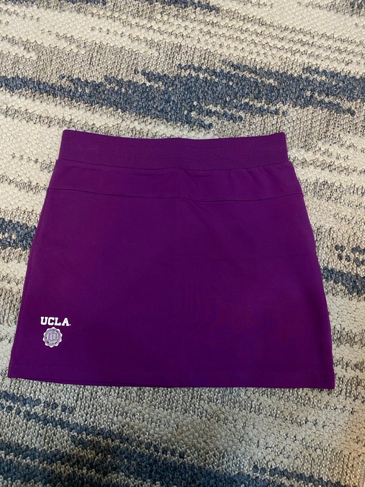 Yumuşak, sıcak kumaştan yapılmış mor, vücuda oturan mini etek. UCLA logosu ve sade, sportif tarz içerir. ♀️XS-S uyumlu hiç kullanılmadı sıfır