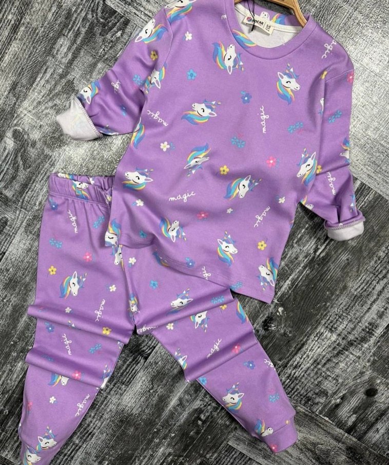 Mor Unicorn Desenli Kız Çocuk Pijama Takımı