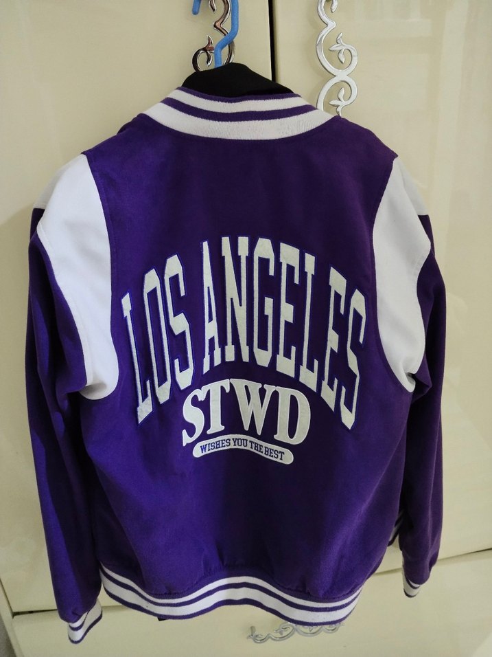 Mor uzun kollu, bisiklet yaka ve baskılı tasarımlı unisex ceket. Rahat kesim ve yumuşak ve sıcak kumaştan yapılmıştır.erkek reyonundan aldım erkek s kadın m uyumlu çok hoş bir dokusu var hiçbir kusuru hasarı yok pazarlık payı vardır