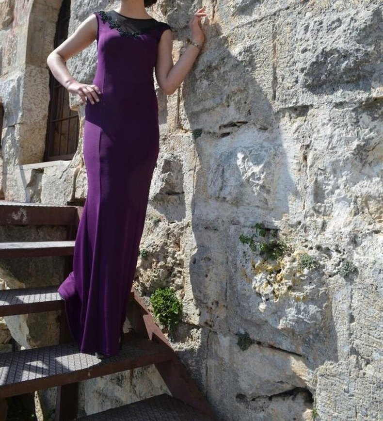 Mor uzun abiye elbise sadece 1 defa giyildi tertemiz