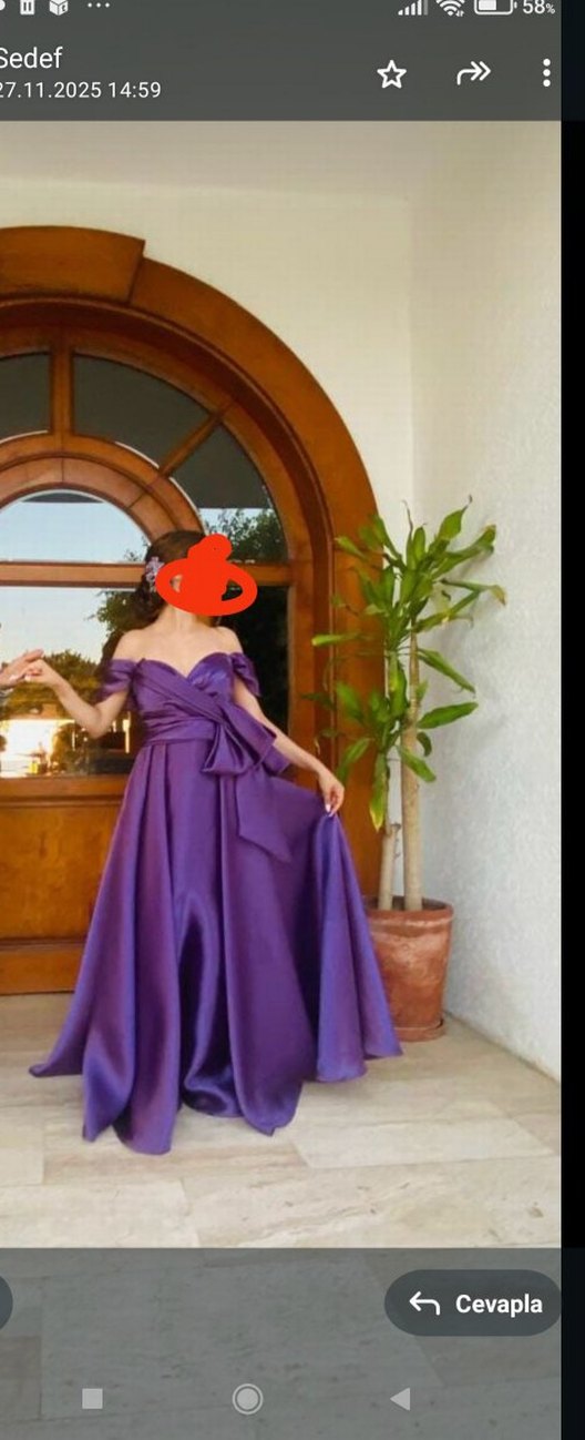 Mor Uzun Abiye Elbise Fiyonk Detaylı