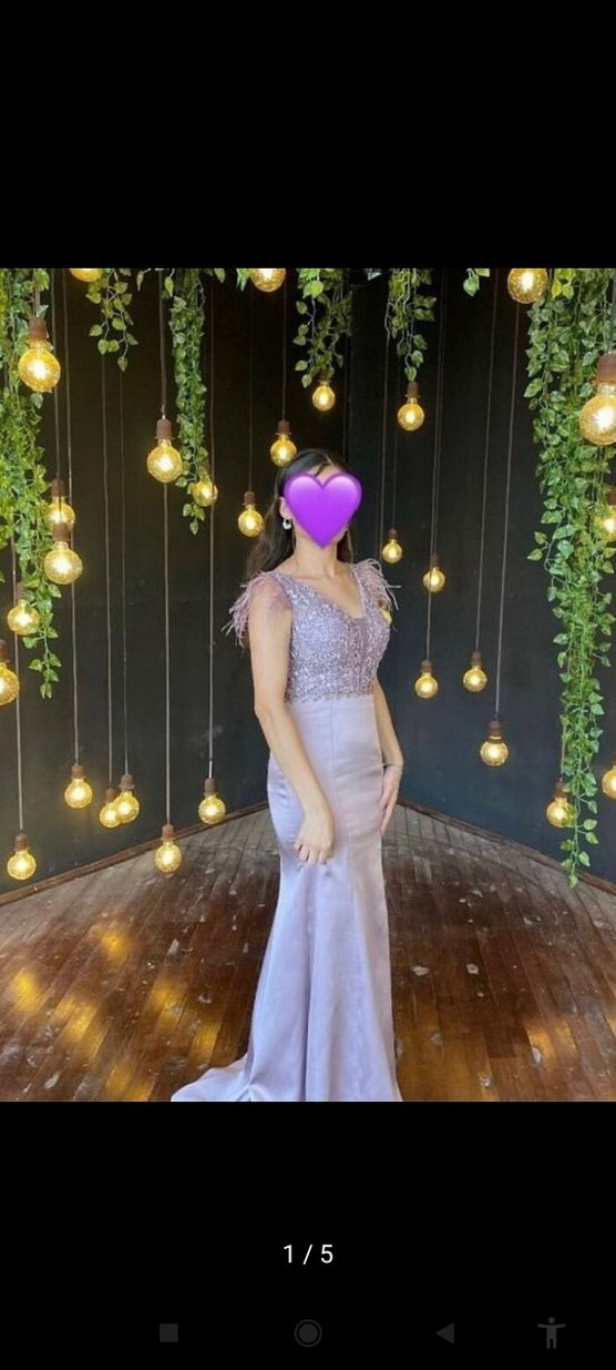Mor renkli, uzun ve v yaka kesime sahip bu abiye elbise, pul işlemeli üst kısmı ve kolsuz tasarımıyla şık ve zarif bir görünüm sunar. ✨