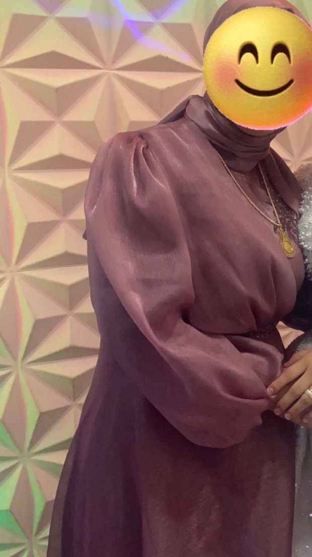 Mor renkli, uzun ve salaş kesim elbise, yüksek yaka ve drapeli uzun kollara sahiptir. Tie-dye deseni ve bohem tarzıyla tesettürlü kullanıma uygundur.