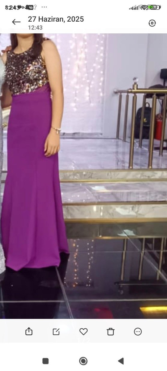 Mor renkli, uzun ve drapeli tasarıma sahip abiye elbise. Tek renk, kolsuz ve tekne yaka ile şık ve modern bir görünüm sunar. balık etekli mor abiye tok bir kumaşa sahip 1 kez kullanıldı temiz şekilde gönderilir beli her iki tarafında tül detaylı gövde renkli pullarla çok şık duruyor