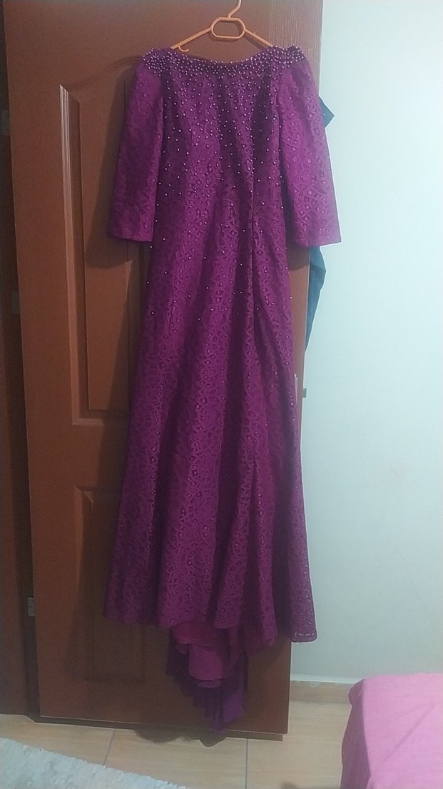 Mor Uzun Drapeli Kadın Abiye Elbise