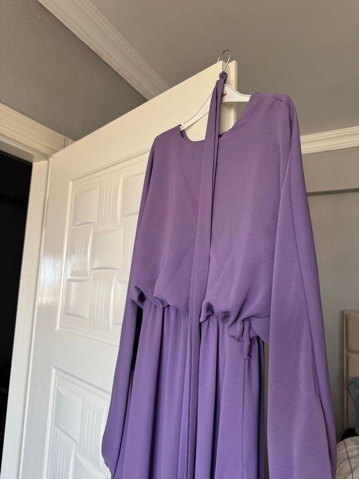 Mor Uzun Drapeli Kadın Elbise