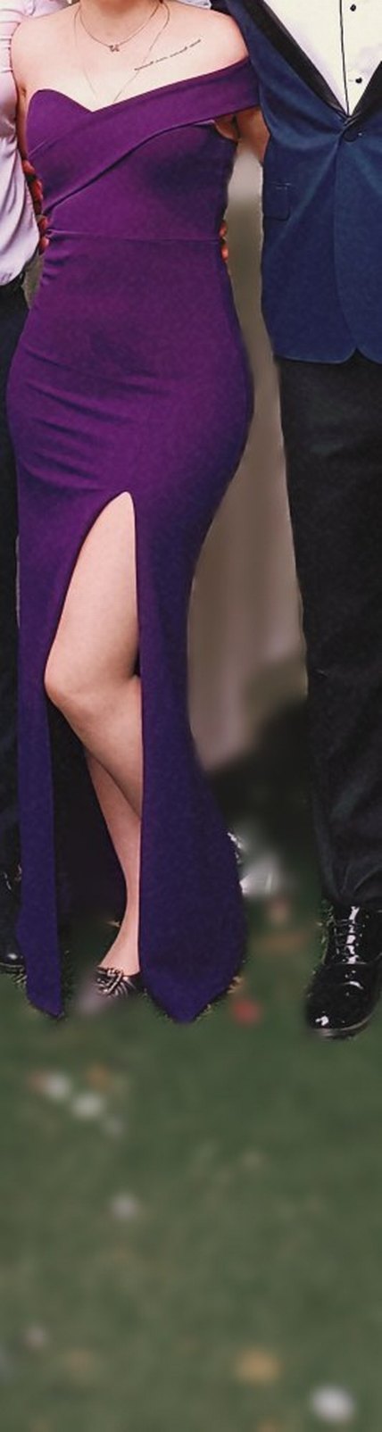 Drapeli ve V yakalı, mor uzun kadın elbisesi. fit kesim, romantik gece için cesur ve gösterişli bir stil sunar. şahane bir elbise sadece 1 kez giyildi 36 beden likralı. giyen kişi 55 kg 167 boy