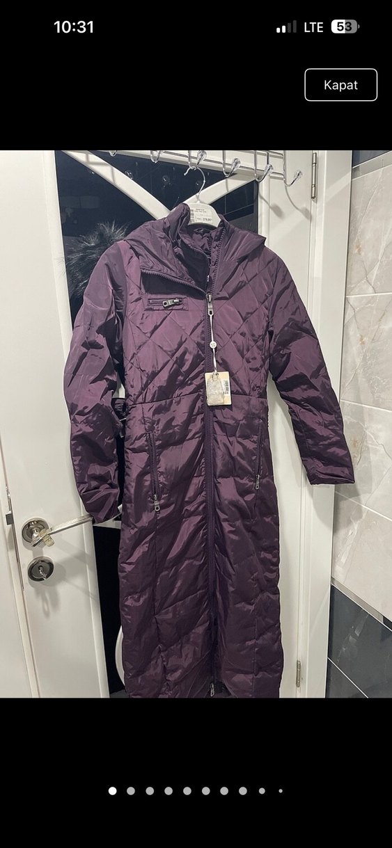 Mor renkli, uzun ve fermuarlı kadın mont.kilo aldım oyüzden uygun fiyata satıyorum 12 bine aldım