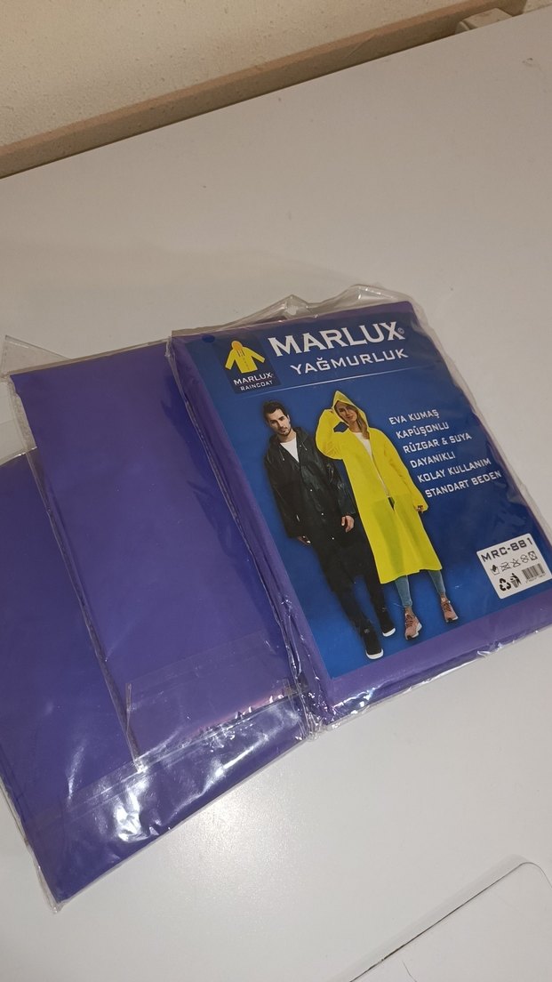 Mor renkte, kapüşonlu ve velcro detaylı uzun kadın yağmurluğu. Regular kesim ve uzun kolludur, sokak modasına uygun bir tasarıma sahiptir. MARLUX baskısı bulunur. ️ ADET FİYATIDIR