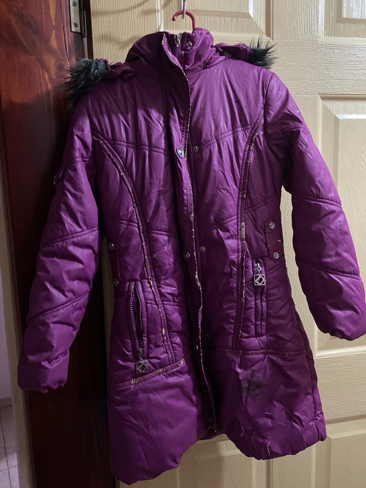 Mor Uzun kız çocuk Kışlık Mont Kürklü