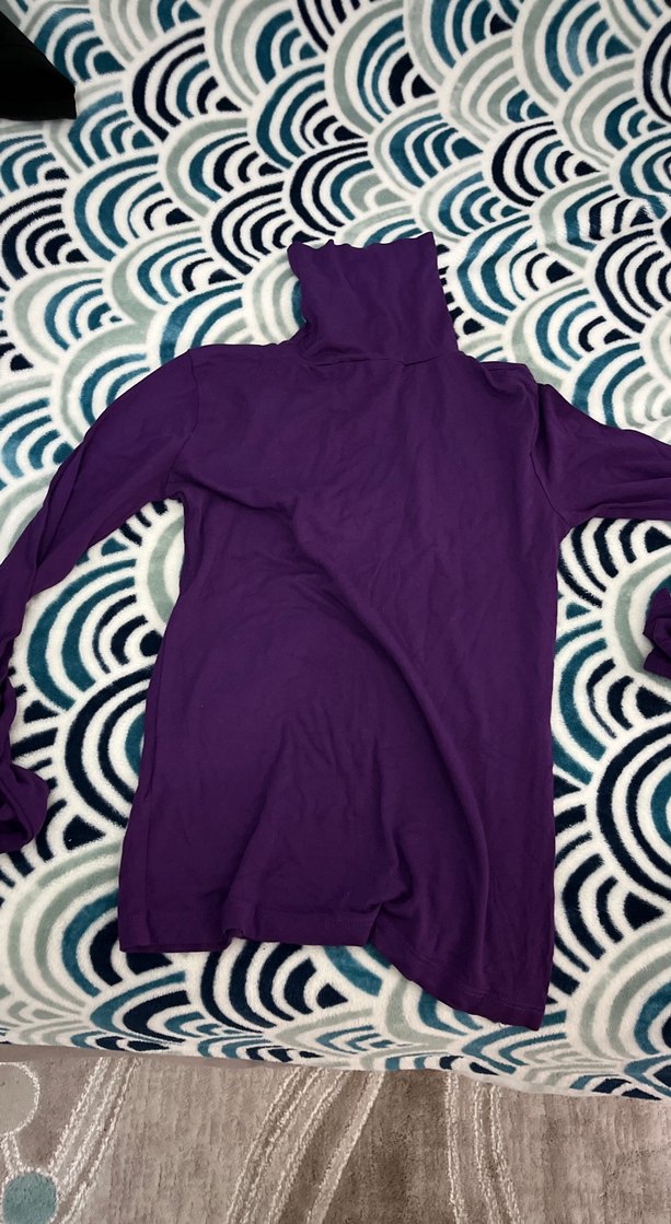 Mor renkte, uzun kollu, balıkçı yaka ve drapeli detaylı, yumuşak ve sıcak dokulu, günlük kullanıma uygun kadın kazak.
