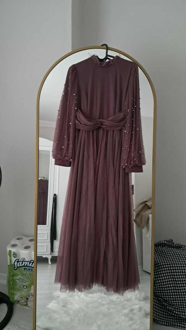 mor Uzun Kollu Bohem Kadın Abiye Elbise