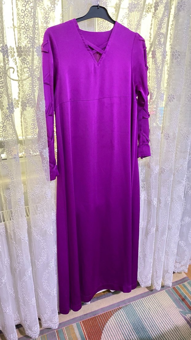 Mor Uzun Kollu Bohem Salaş Elbise