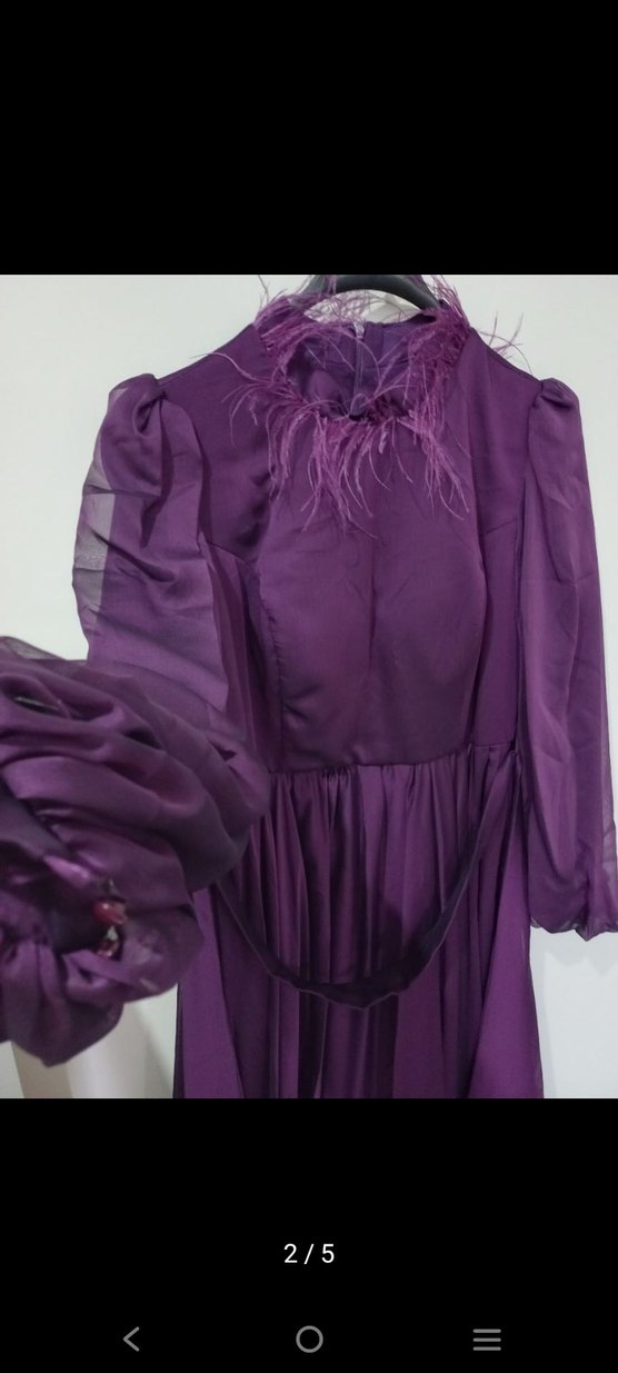 Mor Uzun Kollu Drapeli Kadın Abiye Elbise