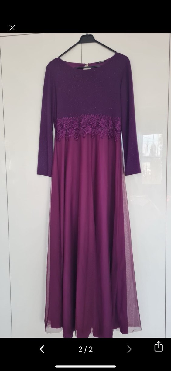 Mor Uzun Kollu Drapeli Kadın Elbise abiye