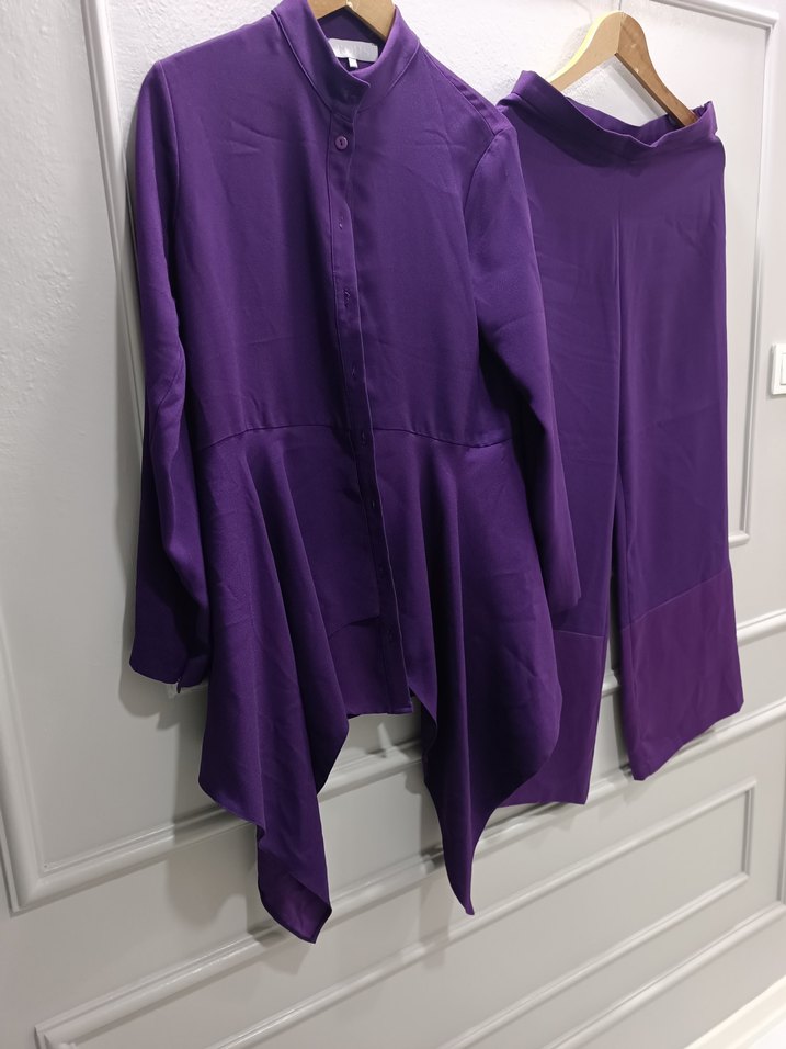Mor Uzun Kollu Drapeli Kadın Tunik