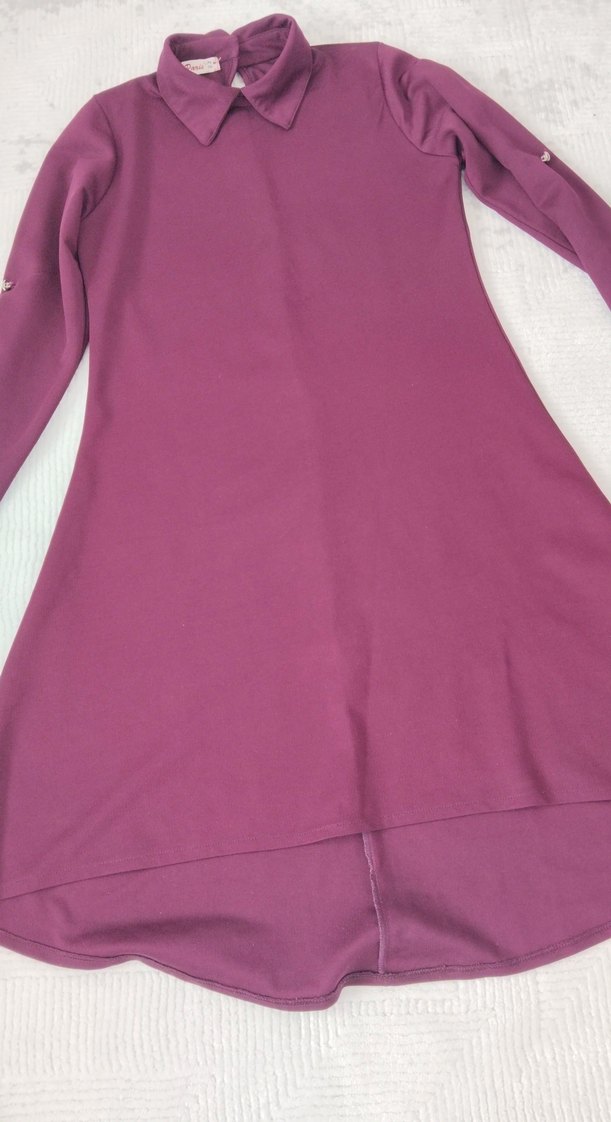 mor Uzun Kollu Düğmeli Tunik