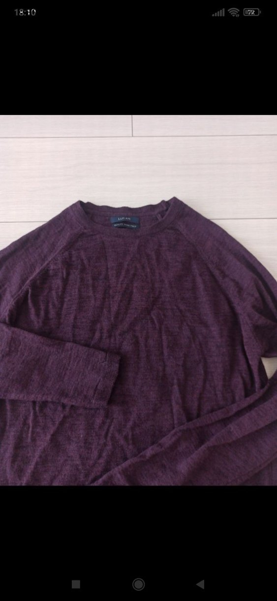Mor renkli, uzun kollu ve yuvarlak yakalı erkek triko kazak. Rahat kesimi ve örme dokusu ile günlük kullanıma uygundur. hafif tüylenme var yıkama sonucu oluşmuştur onun dışında çok iyi durumdadir