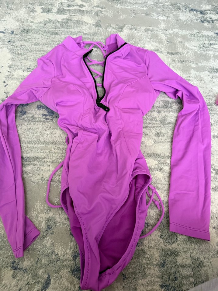 Mor Uzun Kollu Fermuarlı Kadın Mayo