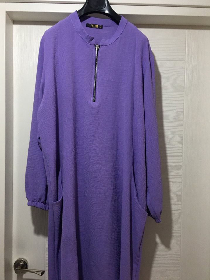 Mor Uzun Kollu Fermuarlı Kadın Tunik